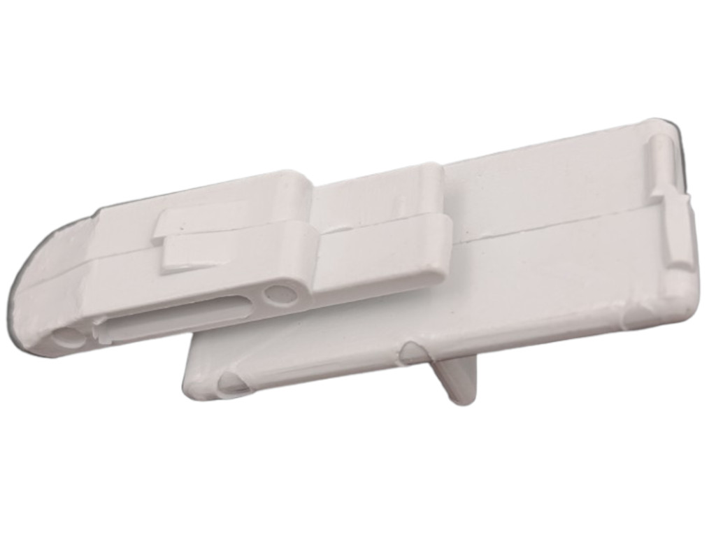 Pojistka mřížky 223175 v bílé barvě je originální náhradní díl pro odsavače par MORA, určený k bezpečnému uchycení mřížky digestoře. Pojistku lze použít jak na levou, tak na pravou stranu odsavače par, což zajišťuje univerzální využití a snadnou výměnu.