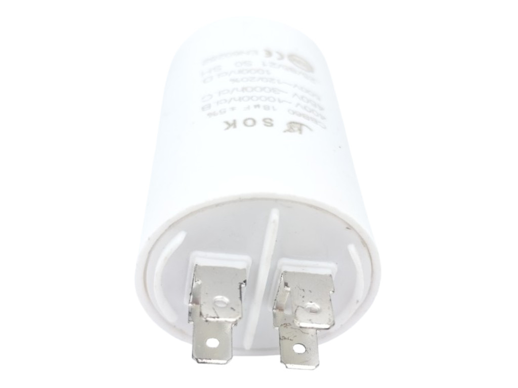 Rozběhový motorový kondenzátor 18 µF / 500 V je univerzální náhradní díl pro elektromotory domácích i průmyslových spotřebičů. Slouží ke spuštění motoru a zajištění jeho správného rozběhu, stabilního chodu a optimálního výkonu.